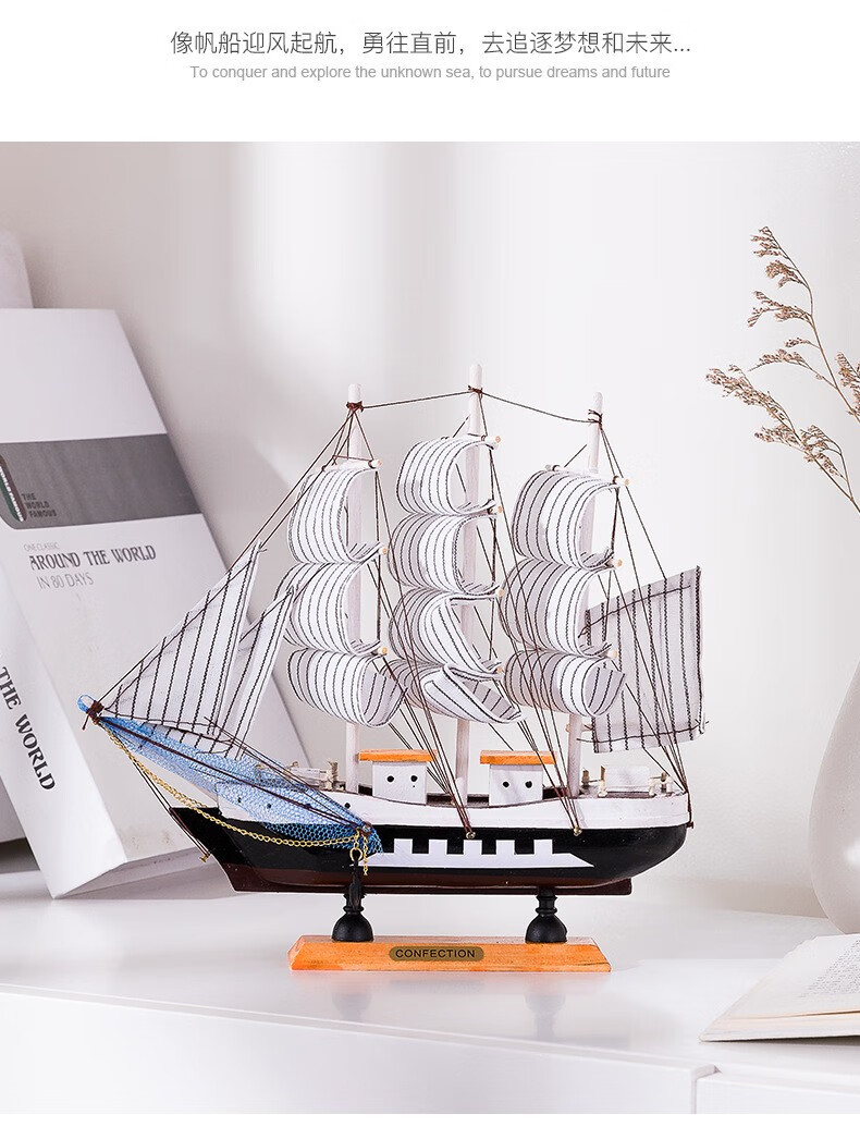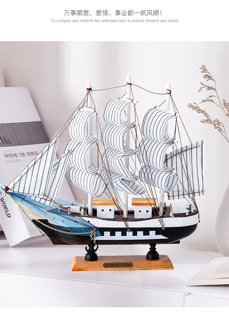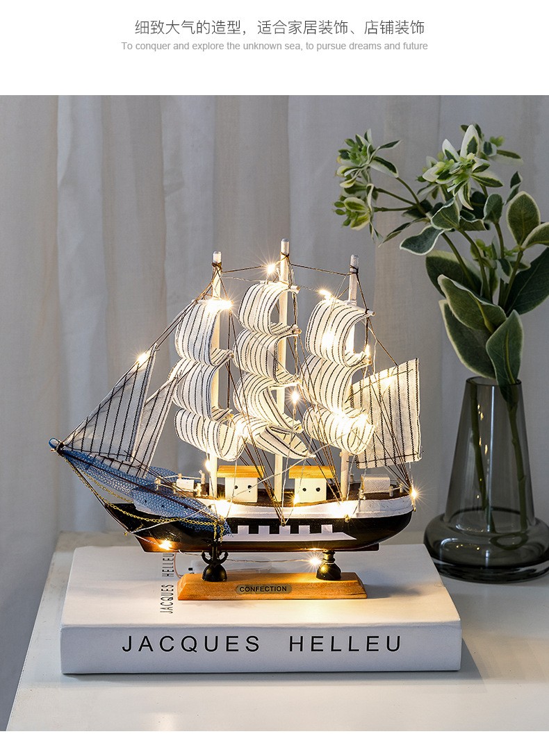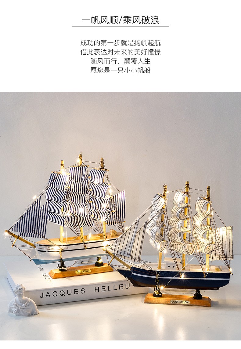 一帆风顺摆件带灯帆船模型客厅酒柜办公室书房架桌面生日礼物帆船摆件带灯串【23*4.5*23cm】