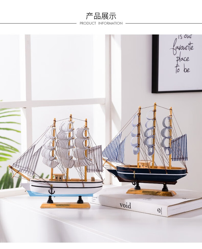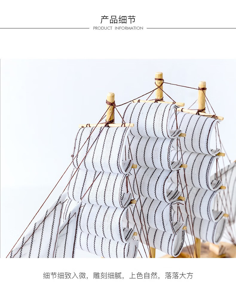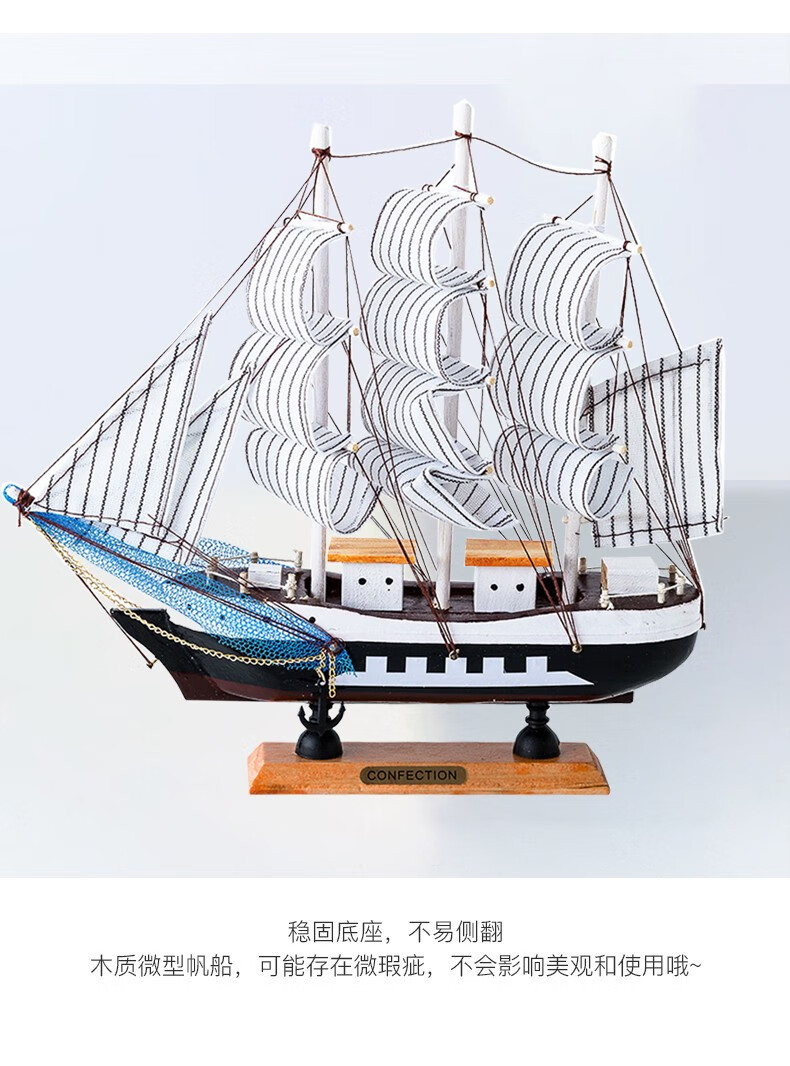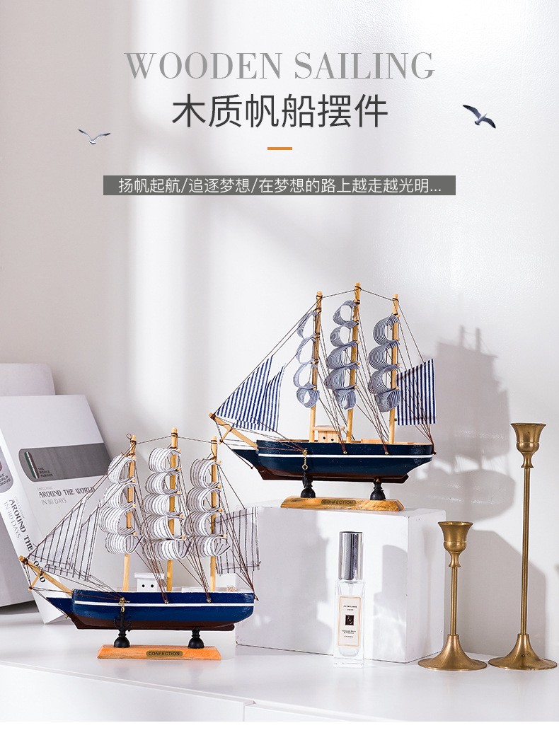 一帆风顺摆件带灯帆船模型客厅酒柜办公室书房架桌面生日礼物帆船摆件带灯串【23*4.5*23cm】