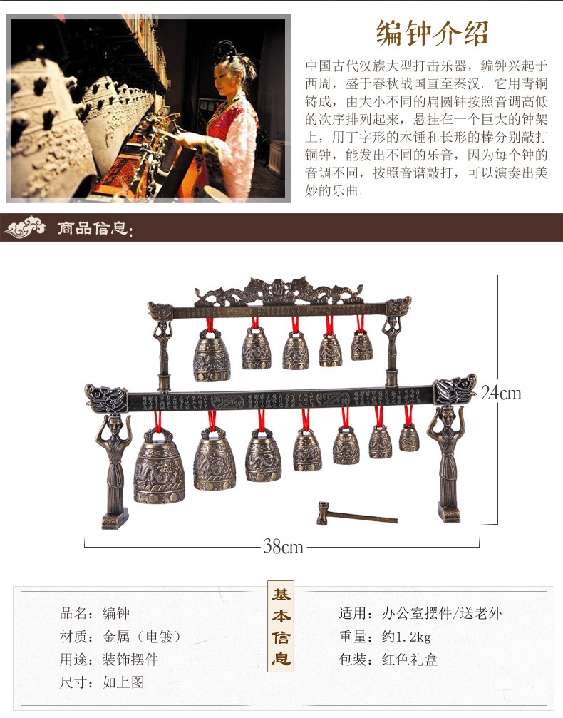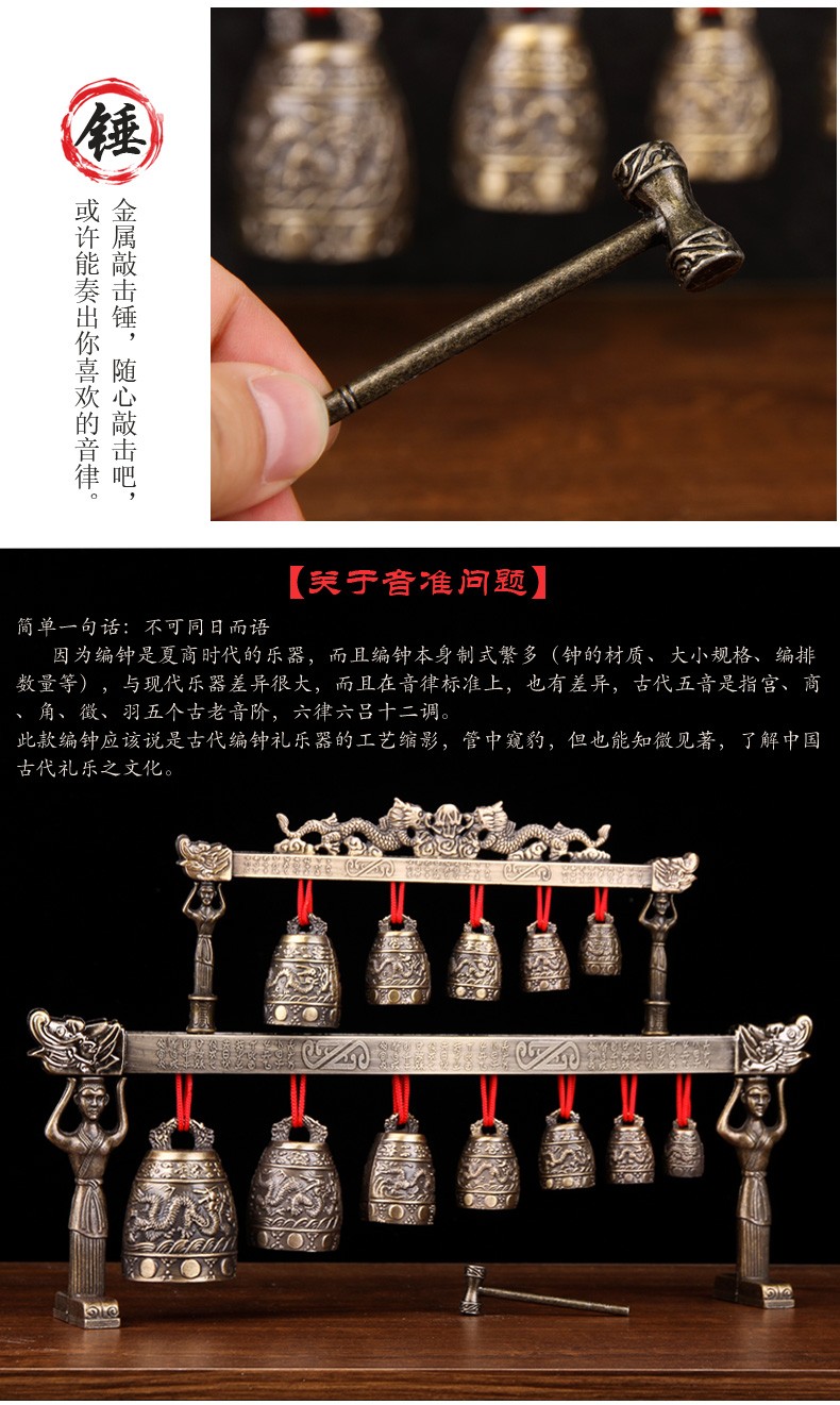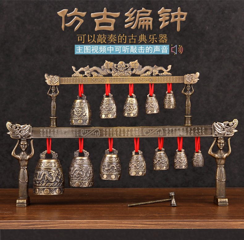 仿古青铜编钟书房摆件办公室装饰乐器工艺品中国特色礼品送老外双层