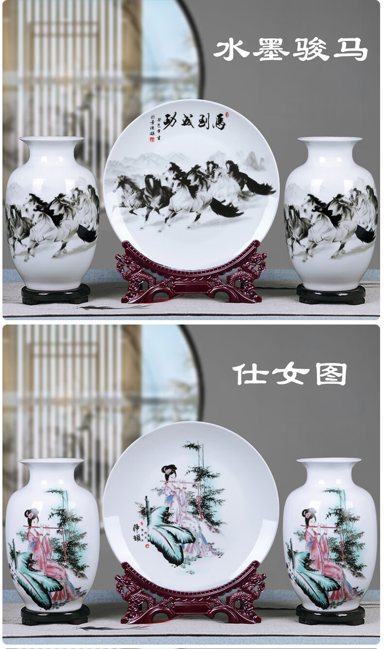 景德镇时尚现代简约陶瓷三件套花瓶插干花器客厅家居装饰品电视柜玄关酒柜工艺品摆件