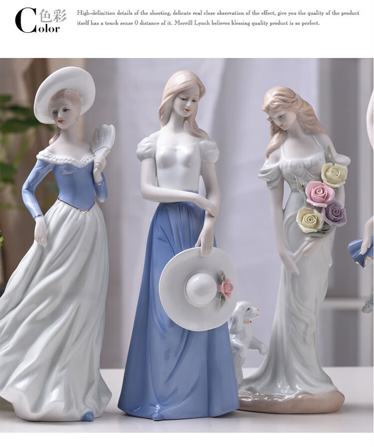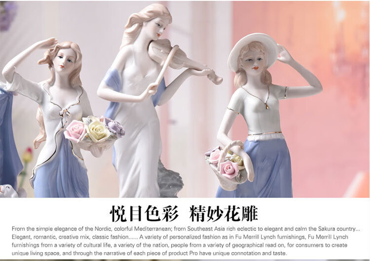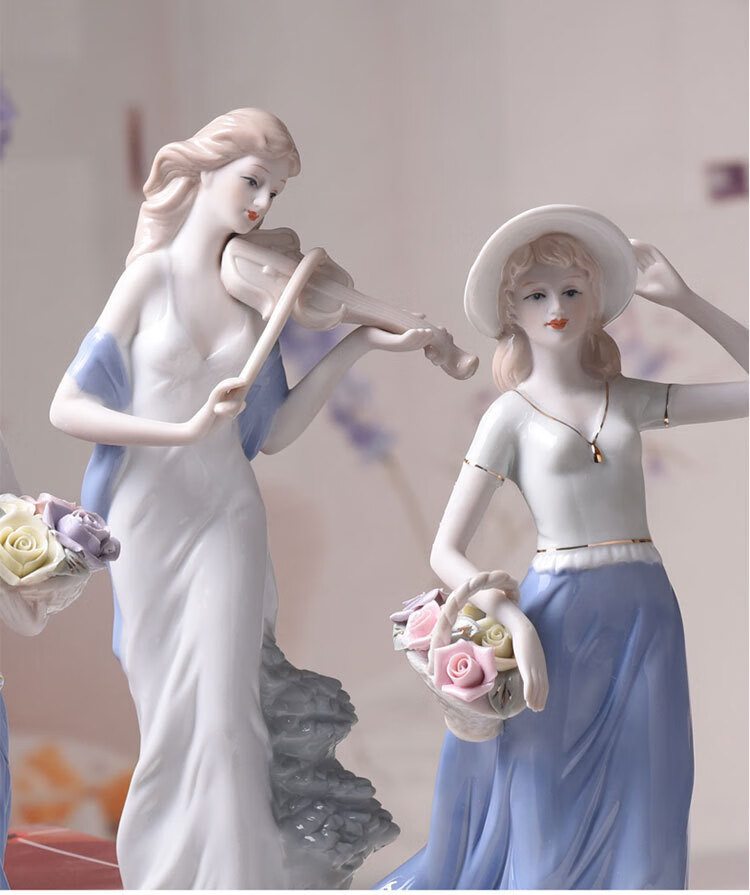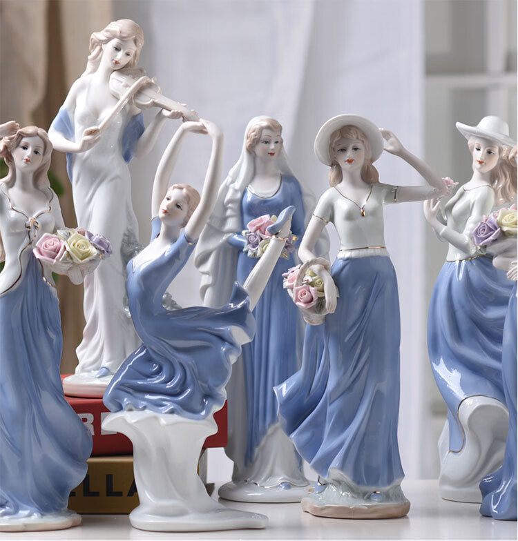 景德镇欧式陶瓷工艺品芭蕾女人物雕塑创意家居陶瓷捧花女孩