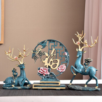 一鹿有你玄关客厅电视酒柜书房摆件工艺品开业结婚乔迁礼物装饰“福”一鹿有你格调蓝带花