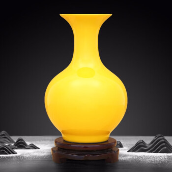 景德镇陶瓷器新中式纯黄色花艺插花瓶工艺品客厅摆件家居酒柜玄关书房电视柜办公室博古架茶室装饰品瓷瓶摆设中号黄颜色釉赏瓶(配木质旋转底...